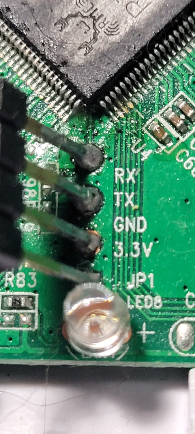 After having identified the 3 pins on the pcb thanks to the perfectly clear indications RX TX 3.3v